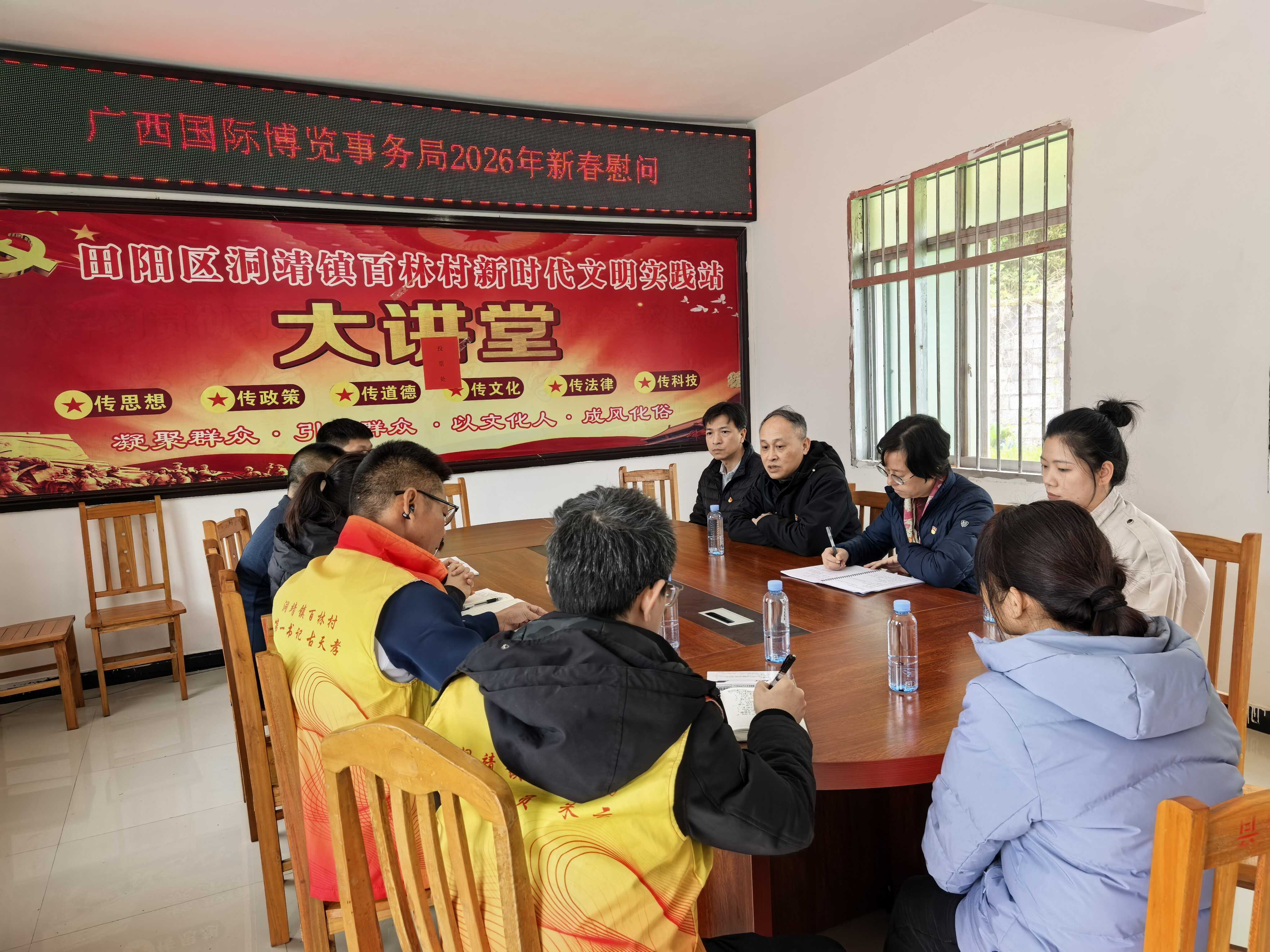 为深入贯彻落实中央及自治区关于扎实推进乡村全面振兴的工作部署,关心关爱驻村工作队员传递马年新春温暖,2026年2月11日,广西博览局组织开展 “情系百林村 马年启新程” 主题慰问活动。局党组成员、副局长梁艺光一行到百色市田阳区洞靖镇百林村,慰问驻村工作队及困难群众,送去新春祝福和慰问物资。