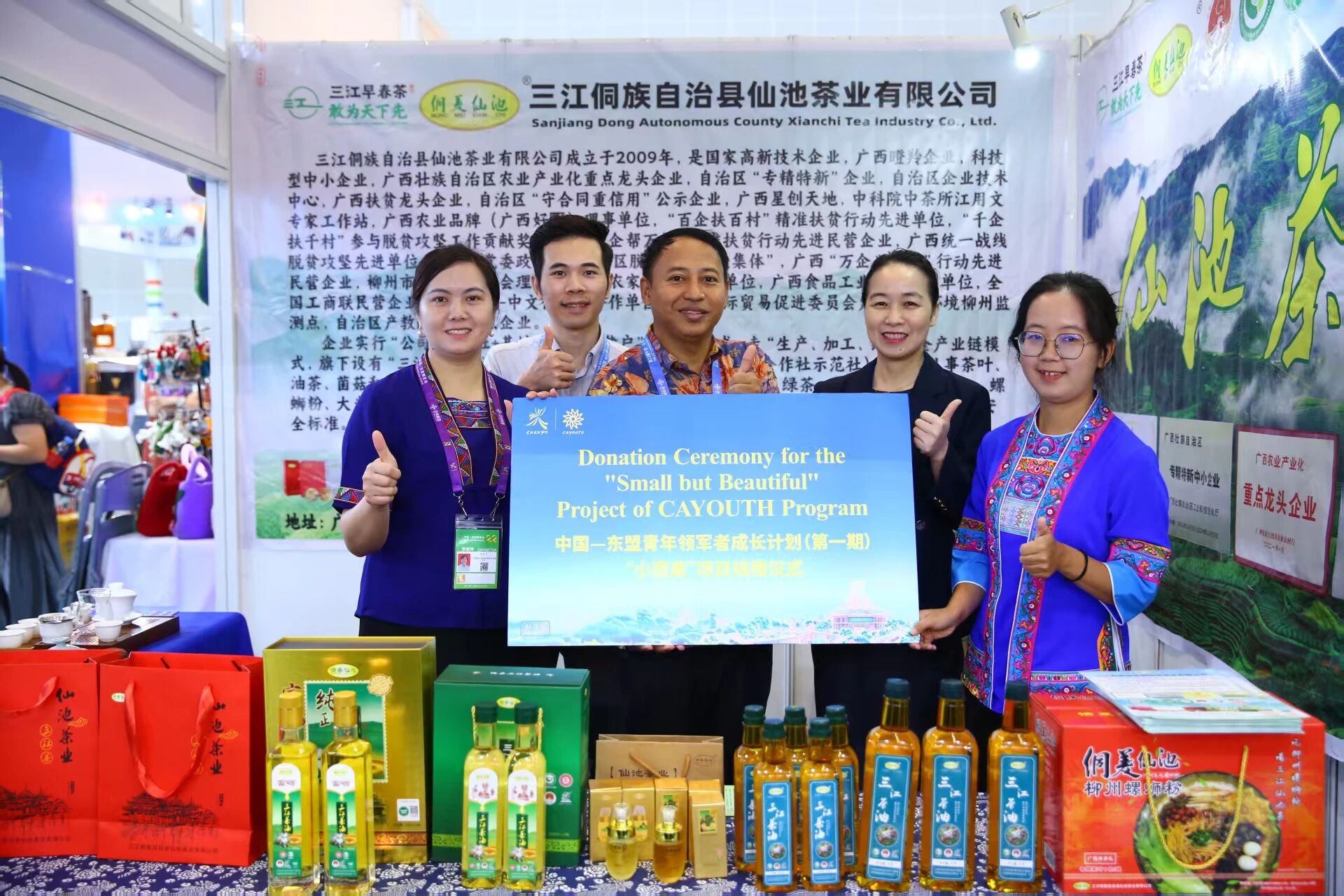 2025年6月,中国—东盟青年领军者成长计划(第一期)29名学员(来自柬埔寨、印尼、老挝、马来西亚、缅甸、菲律宾等6国)在广西柳州三江万亩茶园共同启动青年领军者“小而美”项目。该项目创新采用“青年领养+云观养+公益反哺”模式,通过线上“云观养”让东盟青年与三江茶园建立联结,形成对茶田的持续关注与支持。此次东博会参展收益捐赠,标志着“小而美”项目完成从“云端领养”到“实地结果”的完整闭环,成为项目落地见效的首个重要成果。