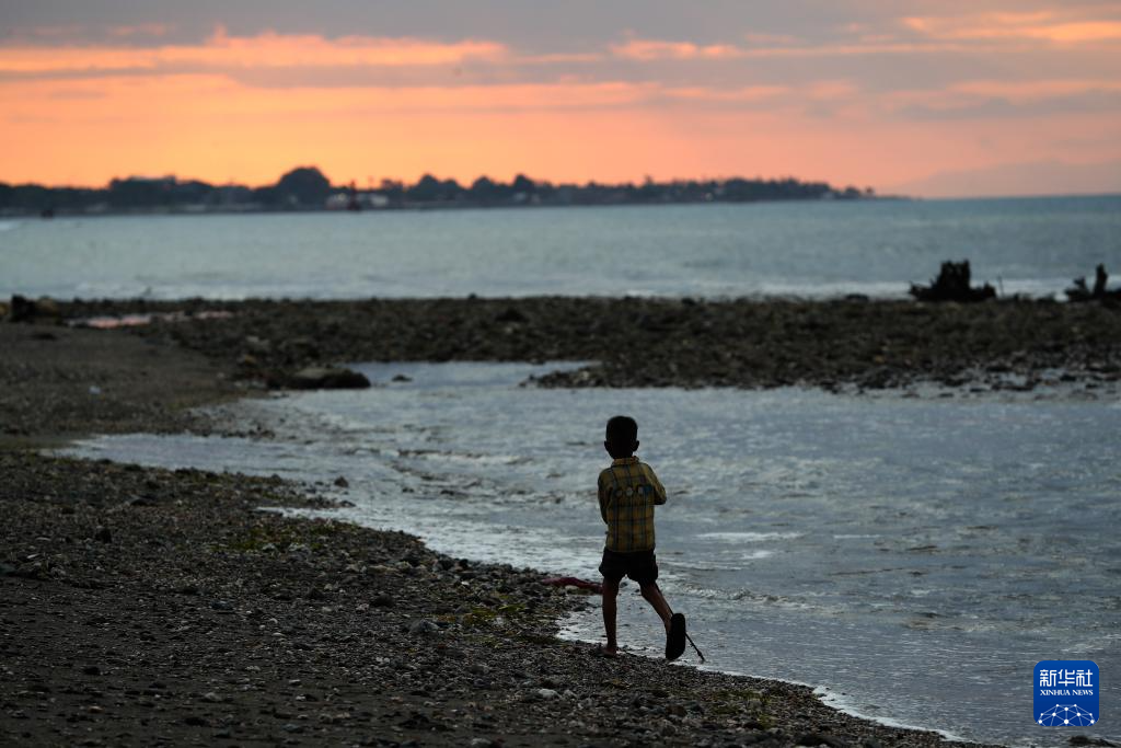 9月16日,在东帝汶帝力,一名儿童在海边玩耍。新华社记者 岑云鹏 摄