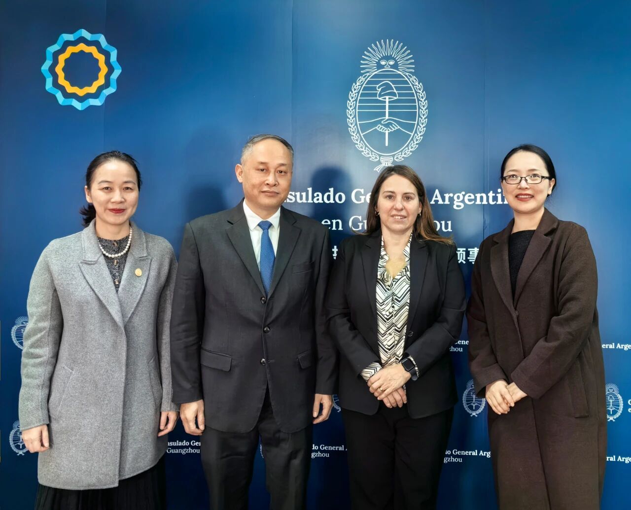 图为东博会秘书处工作组与阿根廷驻穗总领事时善美合影