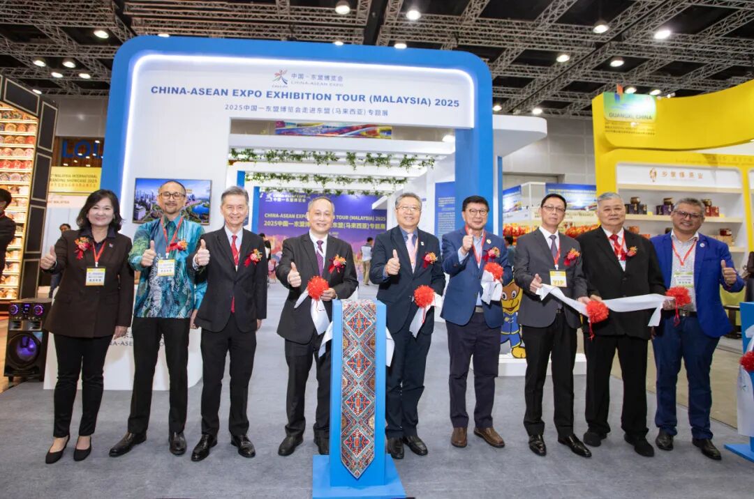 中国驻马来西亚大使馆经商处公参孙淑强、中国—东盟博览会秘书处副秘书长梁艺光、马来西亚对外贸易发展局中国和东北亚事务部高级主管沙里夫、马来西亚制造商联合会会长拿督苏天莱、马来西亚-中国总商会副会长拿督施明玉、马来西亚国际商务促进协会会长拿督张创迪、马来西亚一带一路总商会总会长戴德兴、马来西亚中华总商会副总秘书蔡文洲出席开馆仪式并共同为专题展剪彩。来自中马两国的政府官员、商协会代表、知名企业家及媒体代表共同见证。