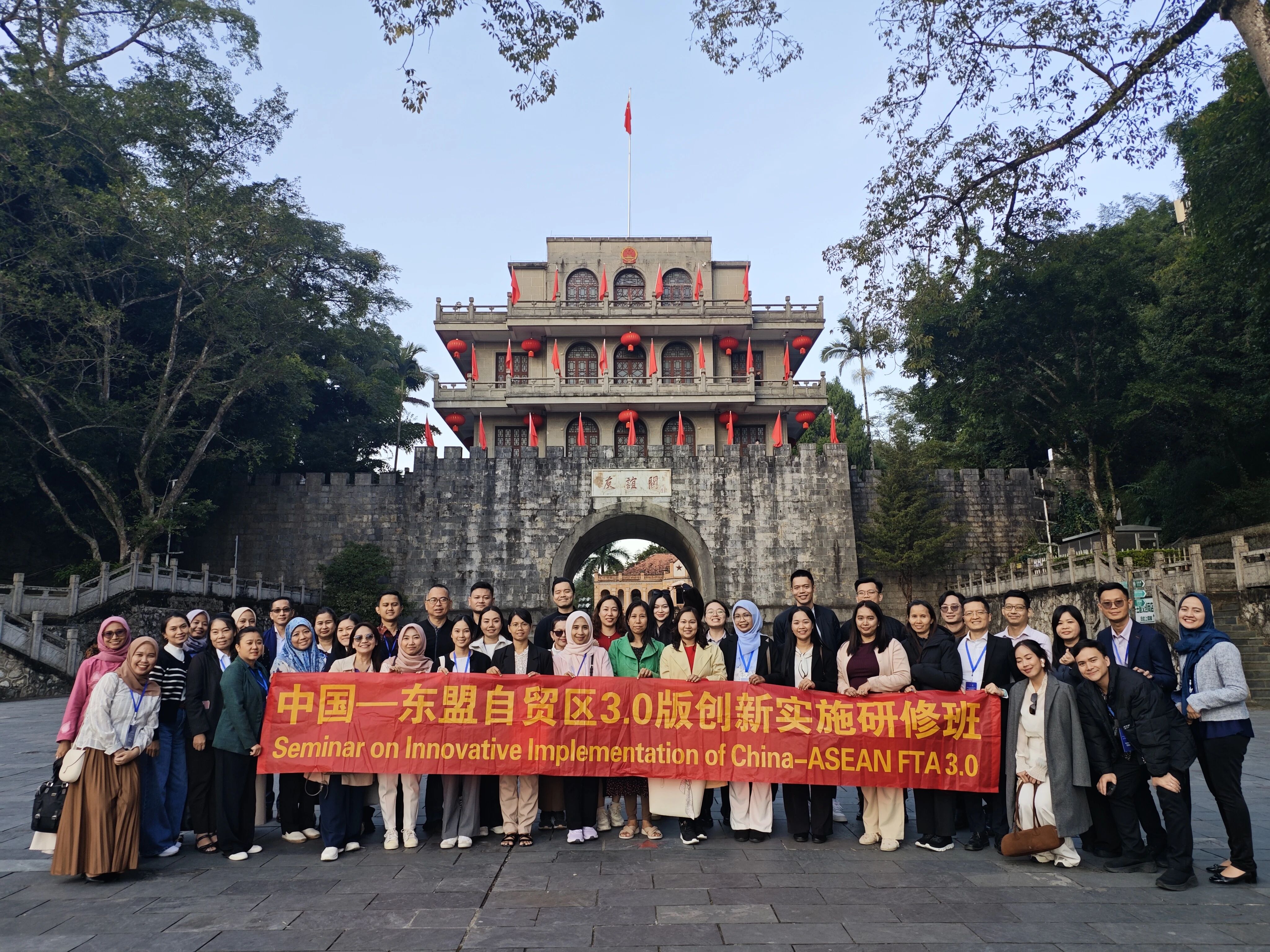 近期,中国—东盟自贸区3.0版创新实施研修班组织学员前往广西崇左,深入中越友谊关—友谊智慧口岸、崇左高新技术产业园等地,近距离探访中国—东盟跨境合作的鲜活实践;与当地各方座谈交流,了解自贸区发展进程与成功案例,为自贸区3.0版落地实施凝聚共识、汇聚动能。