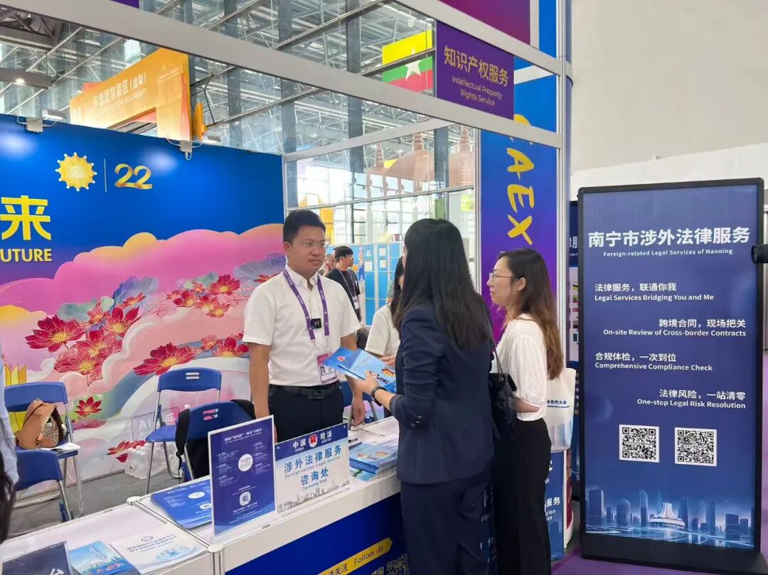 2025年9月21日,第22届中国—东盟博览会(以下简称“东博会”)在南宁顺利落下帷幕。作为展会法治保障的核心力量,南宁市司法局组建的“升级版”涉外法律服务团,历时5天(9月17日—21日)驻点南宁国际会展中心,以“人员更优、服务更实、智能更强”的特色举措,为中外客商提供全链条法治支撑,累计服务580余人次,发放涉外法律服务宣传资料1300多份,用专业实力擦亮南宁“面向东盟法治服务”名片。