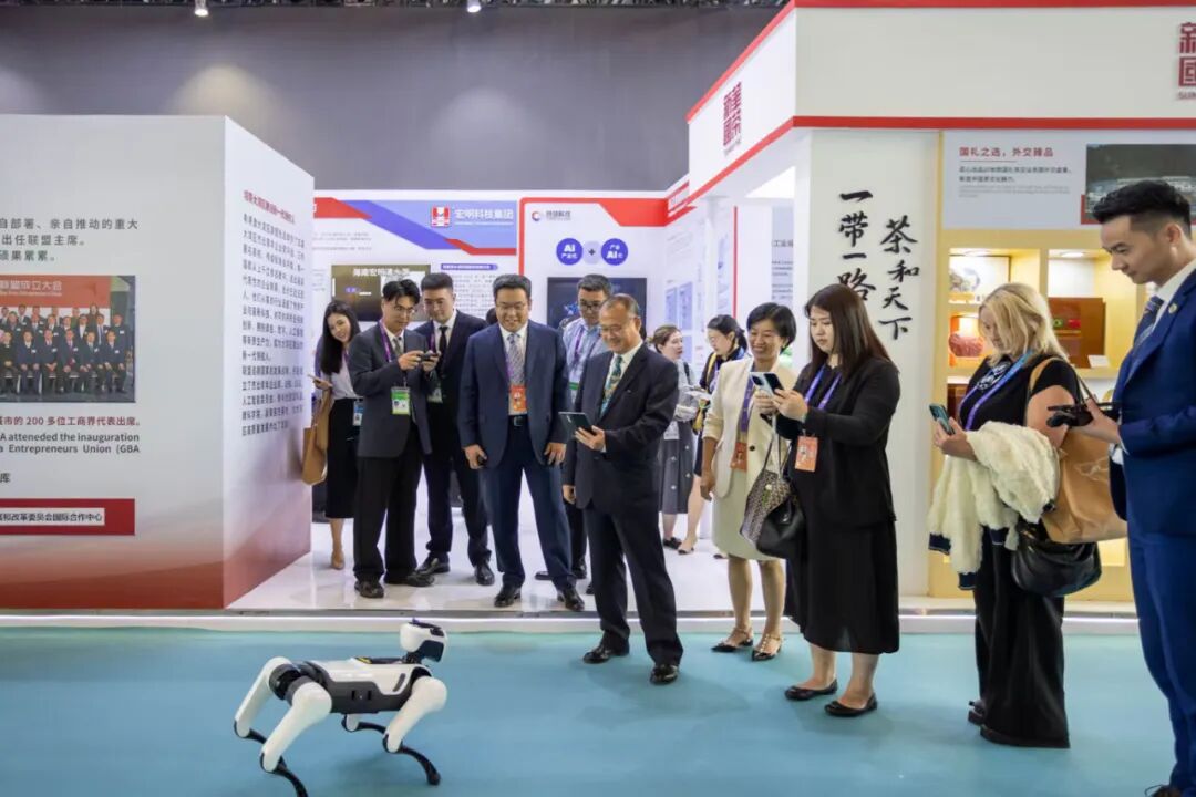 东博会上,蔡冠深博士一行参观多家企业和机构,包括浙江创邻科技,其自主研发的国产原生高性能图数据库Galaxybase打破多项世界纪录;专注于复杂场景工业级无人机应用企业——航大汉来;国内直驱设备制造商——佛山德玛特智能装备科技有限公司,以及佛山南海总商会、新华国茶、柬埔寨贡布中-柬(泰文隆)工业经济特区展台。